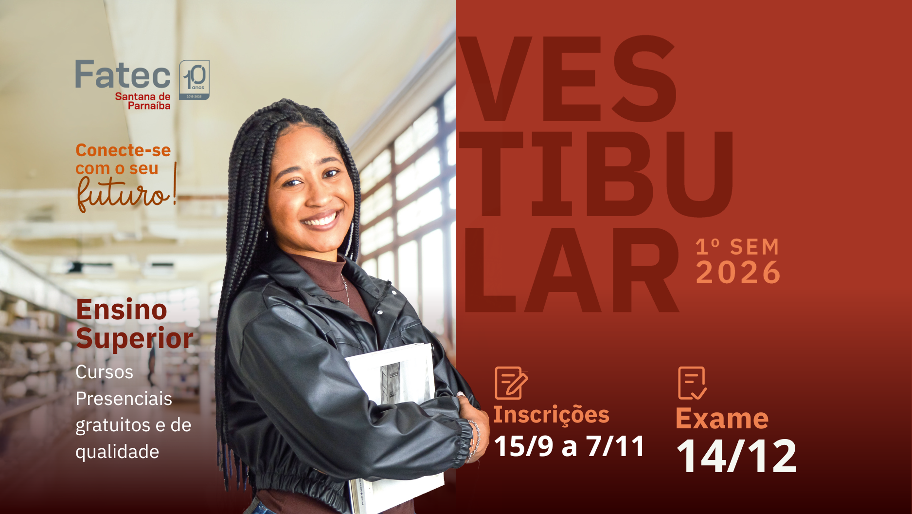 A Fatec Santana de Parnaíba, instituição pública de ensino superior vinculada ao Centro Paula Souza (CPS) — autarquia do Governo do Estado de São Paulo — informa que estão abertas as inscrições para o Vestibular do 1º semestre de 2026.
